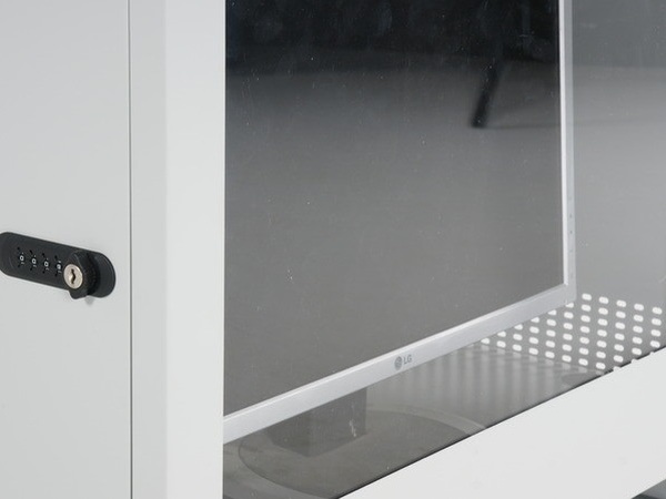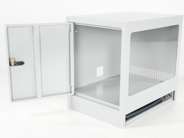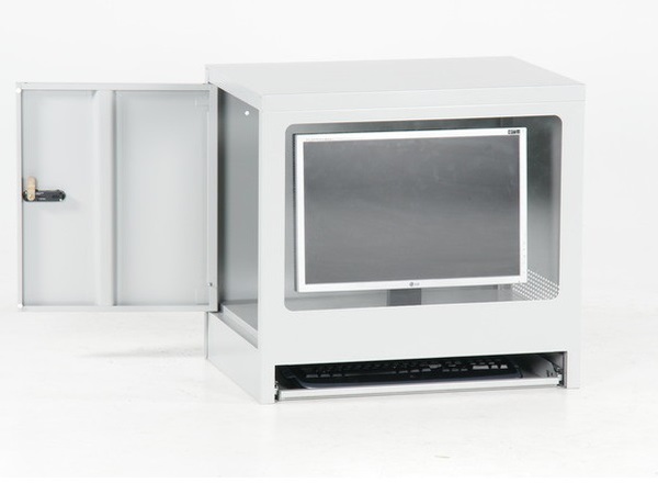 Lukustatav uks küljel ja klaviatuuri väljatõmmatav sahtel.