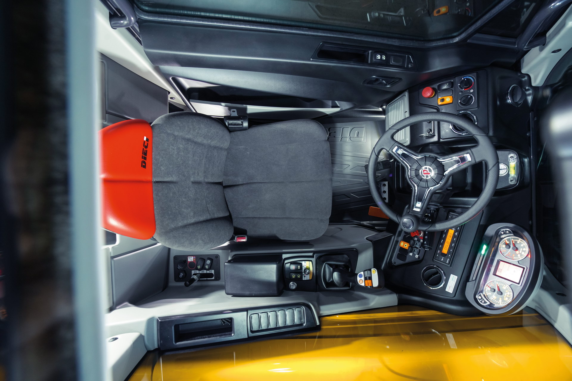 Kaasaegne sõiduk uue Giugiaro Design kabiiniga, mis on rikastatud veoautode ja autotööstuse sektorist pärit materjalidega, mis parandavad selle interjööri ja kasutajamugavust.